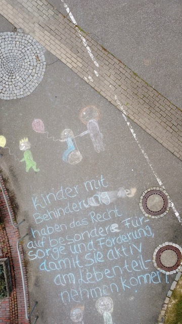 UNICEF Deutschland hat nämlich alle Kinder, Jugendlichen und Eltern dazu aufgerufen, sich mit bunten Kreidebildern für die Belange und Rechte der Kinder starkzumachen und so gemeinsam – bunt, laut und kreativ- auf die Rechte von Kindern aufmerksam zu machen, um gleichzeitig eine wichtige Botschaft in die Welt zu senden: „Die Lösung für die Gestaltung einer lebenswerten Zukunft liegt in der Verwirklichung der Kinderrechte“.