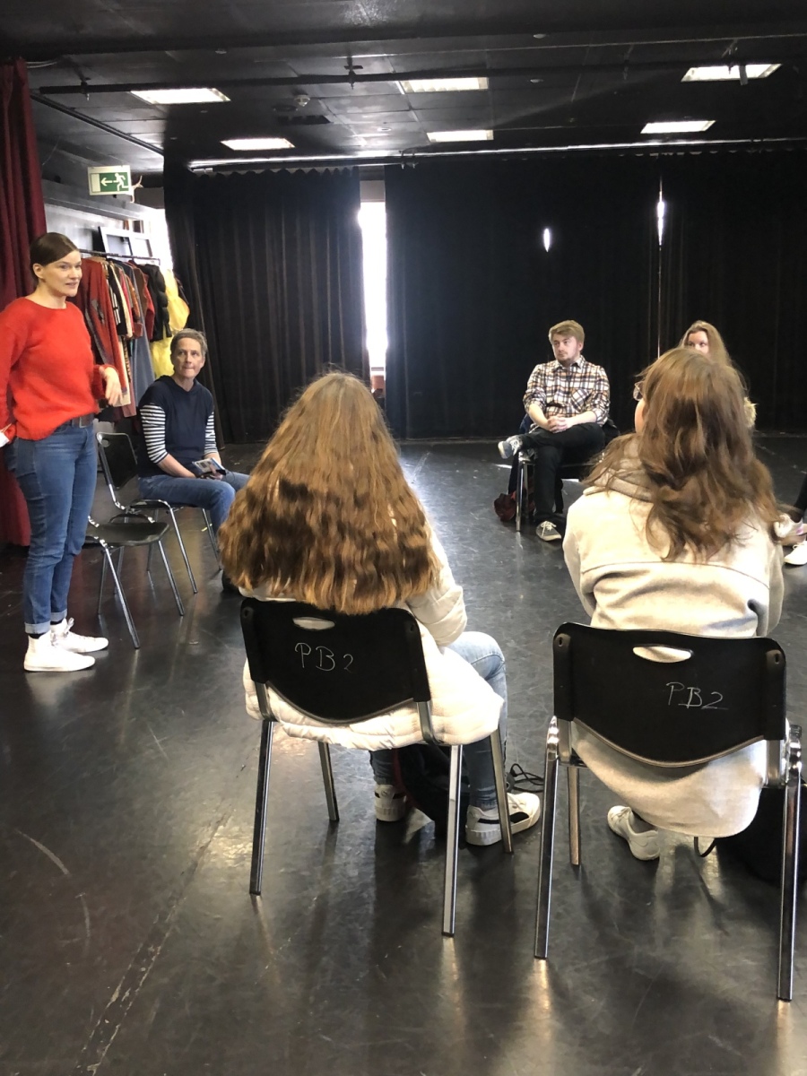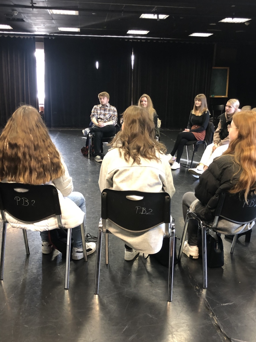 Nach der Vorstellung nahmen sich die Schauspielerinnen vom Ensemble piedefou noch Zeit für ein Gespräch und beantwortete die Fragen der Klasse, dadurch erhielten die Schülerinnen und Schüler noch wichtige Impulse, für die Gestaltung einer Theateraufführung für Kinder, da sie selbst eine kleine Aufführung im Dezember planen.