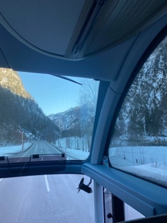 Mit ein „wenig“ Verspätung startete unsere Fahrt am Montag, den 13.02, um 9:00 Uhr (geplant war 7:30 Uhr) nach Inzell. Wir machten über die Fahrt hinweg vier Pausen, bei denen wir einmal bei einem McDonalds hielten. Nachdem wir dann nach ca. 11 Stunden Fahrt bei unserer Ferienanlage ankamen und unsere Koffer aus dem Bus holten und diese schon einmal in die Häuser brachten, trafen wir uns im Gemeinschaftsraum. Dort bekamen wir unsere Helme und Schuhe, so dass wir am nächsten Tag gleich in den Gruppen starten konnten.